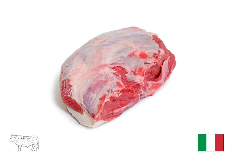 Kalbfleisch höchster Qualität ; Helles Fleisch; geboren in Südtirol/Trentino, gemästet im Trentino (Roveré della Luna), geschlachtet und zerlegt im Trentino (Fleimstal); Fütterung OMG-free; Die hohe Schulter ist ein magerer und kompakter Muskel der Schulter; Geeignet zum Braten oder zum Schneiden von Gulasch.