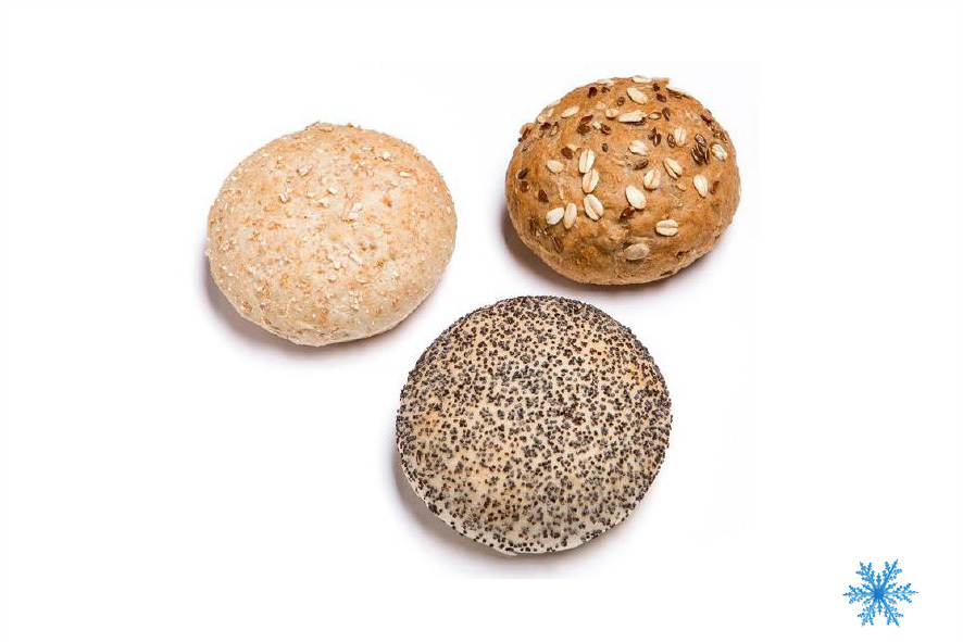 Assortimento di minipanini di grano segale e frumento con fiocchi d'avena (90 pz), panino di frumento con semi di segale (90 pz) e panino rustico con segale e frumento (90 pz). Peparazione in forno preriscaldato a 190° per 5/6 minuti.