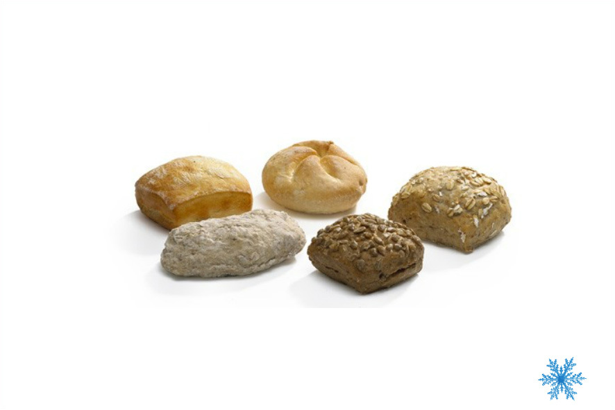 Mini panini assortiti con 90 rosette, 70 panini con semi di zucca, 70 panini con semi di lino. Preparazione: 4 minuti nel forno preriscaldato a 200°C. Perfetto per ristorante e buffet della prima colazione.