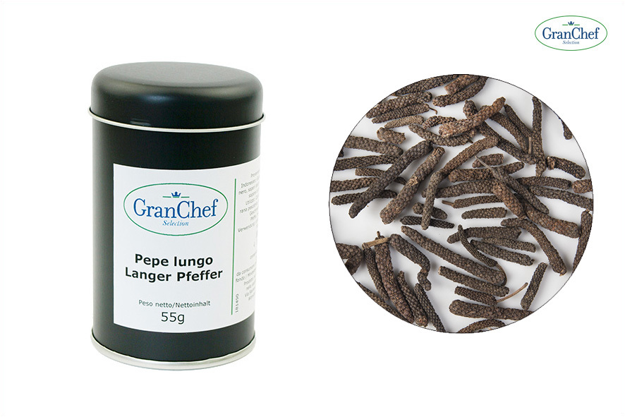 Il pepe lungo proveniente dall'Indonesia ha un sapore più forte di quello del pepe nero ha un sapore leggermente dolce e cioccolatoso. Può essere utilizzato universalmente: con carne bianca, pesce, frutta e dessert.