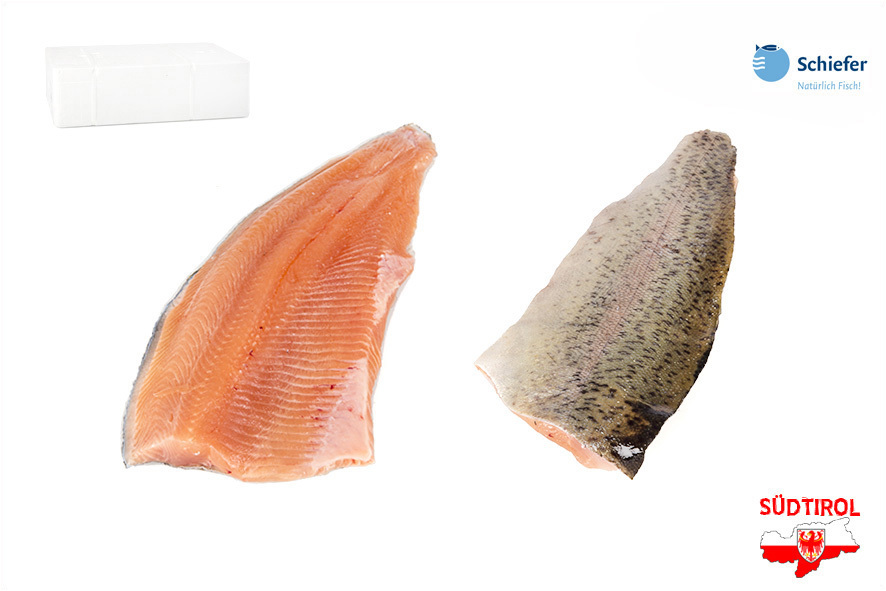 Salmerini alpini provenienti da un allevamento ittico a San Leonardo in Passiria, pochi chilometri a nord di Merano. L'acqua proveniente direttamente dall'acqua di fonte e da un bacino montano sono il marchio di qualità dell'azienda. La temperatura dell'acqua è di +11/ +12° C durante tutto l'anno. In ogni sottovuoto ci sono 2 filetti.